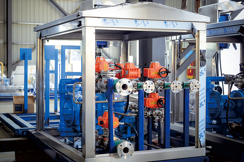 12、 (DN15)循環及取樣電動隔膜泵和(DN50)底油抽取電動隔膜泵在循環及取樣和底油抽取兩個工作模式下,受控制系統控制,得到所需的較小和較大兩種流量。