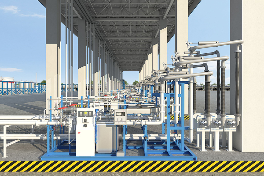 集成比高,安裝就位及維護方便裝車樓將控制儀、流量計、閥門、管道、附屬設備、鶴管、中間連接件及電纜、橋架等集成在一起,現場安裝方便,并且整體維護方便。